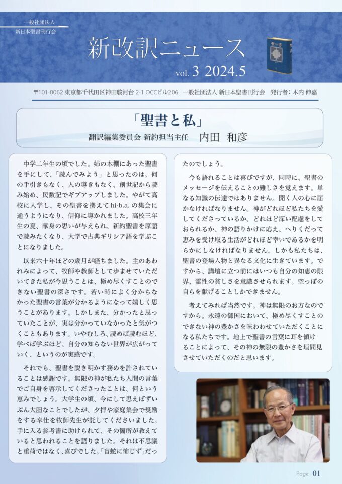 「新改訳ニュース」第3号 2024.4 ニュースScreenshot X Facebook はてブ LINE コピー 2024.04.302024.05.01 いつも新改訳聖書と、新日本聖書刊行会のためにお祈りとご支援を頂き、大変ありがとうございます。さて、新改訳聖書の現在について知って頂くための「新改訳ニュース」第3号が完成しましたので公開致します。どうぞご覧下さり、お祈りとご支援を宜しくお願い申し上げます。 SNSK-newsletter-03
